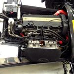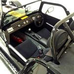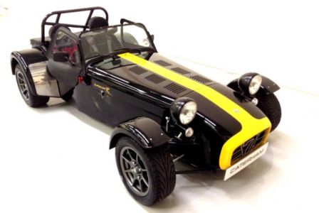 Equipped with the standard dry-sumped K-Series VHPD engine, Caterham fancy "big brakes" and a few creature comforts - windscreen, heater and upholstered seats It gets a bit squashed in the garage but lucky enough to keep company with a bunch of modern and classic sports bikes, a Ferrari 308 and an Impreza STi ...... and it runs rings round the lot!