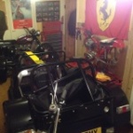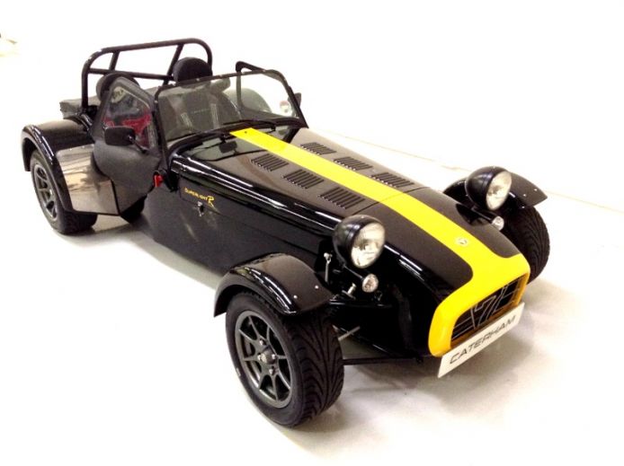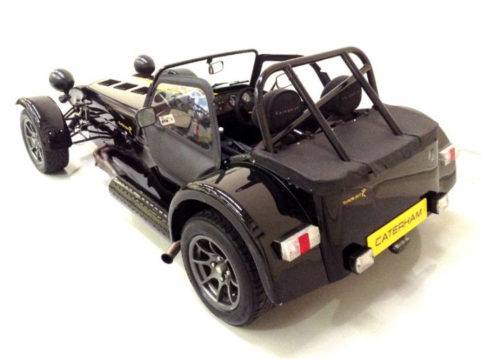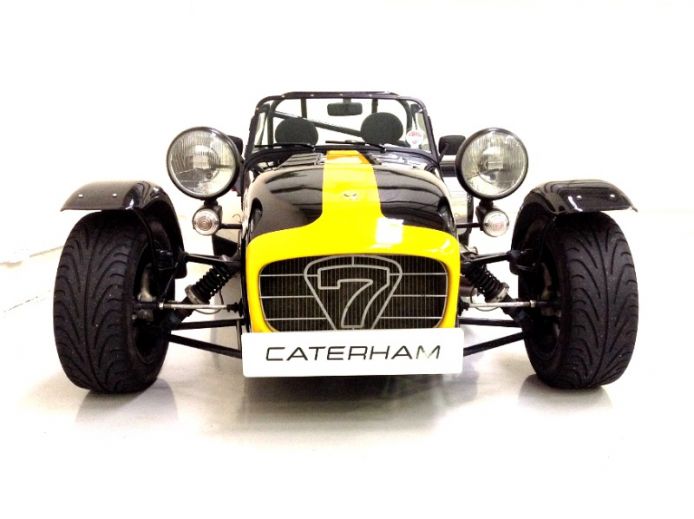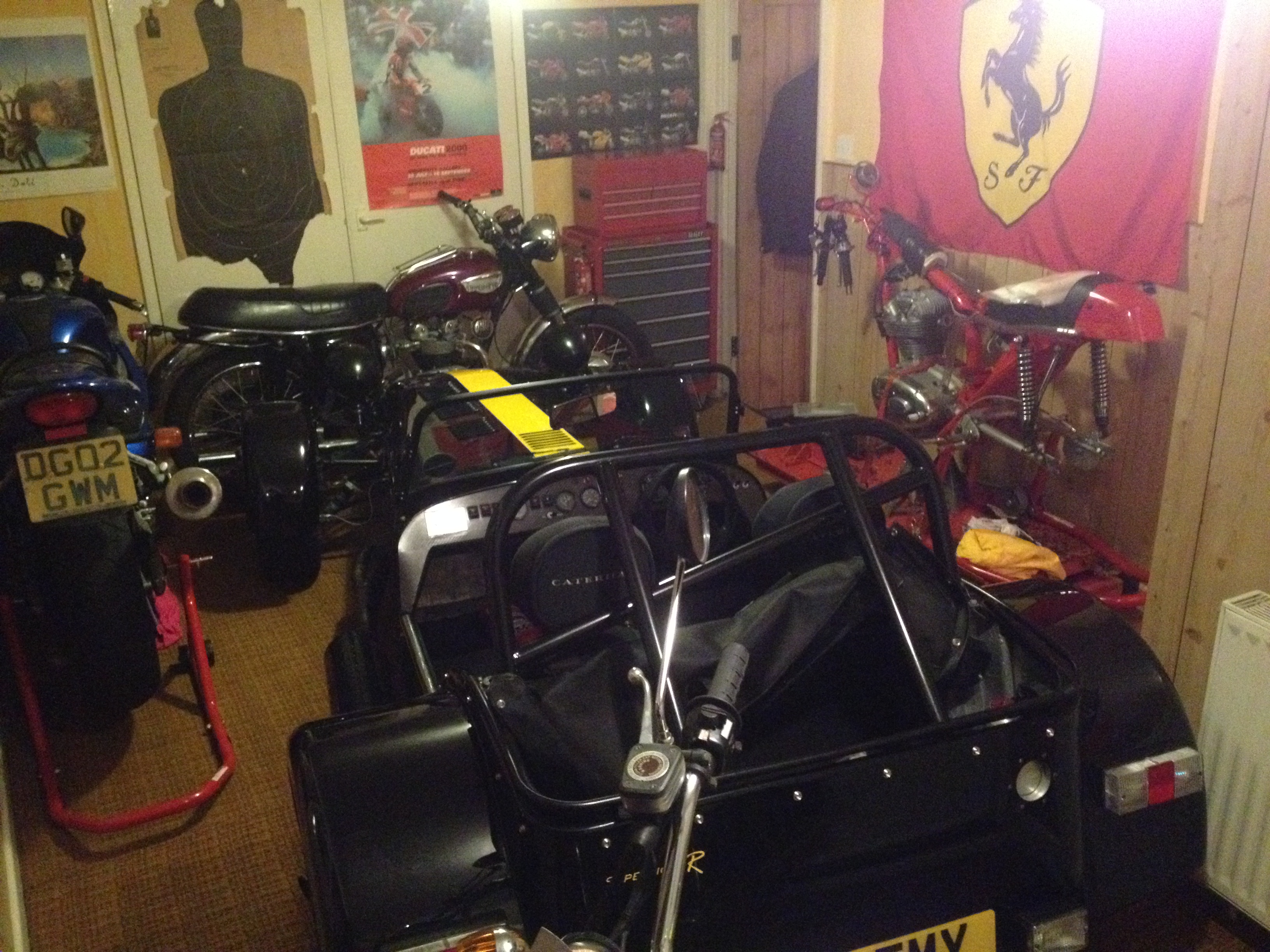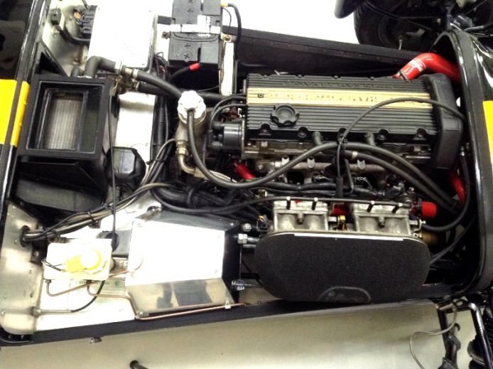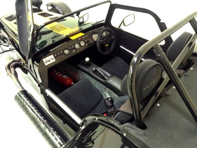 Equipped with the standard dry-sumped K-Series VHPD engine, Caterham fancy "big brakes" and a few creature comforts - windscreen, heater and upholstered seats It gets a bit squashed in the garage but lucky enough to keep company with a bunch of modern and classic sports bikes, a Ferrari 308 and an Impreza STi ...... and it runs rings round the lot!